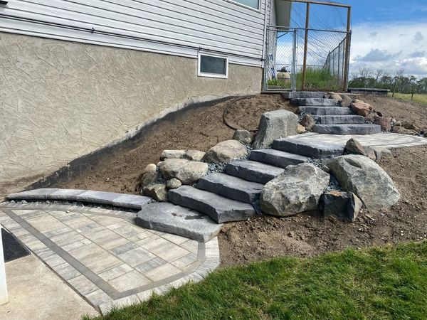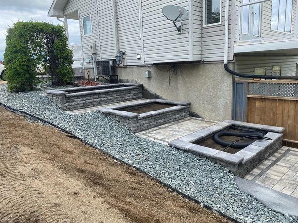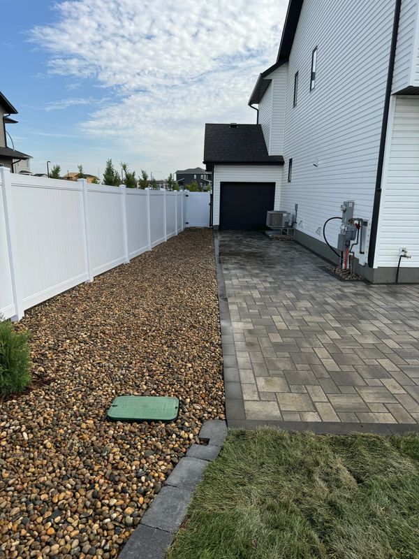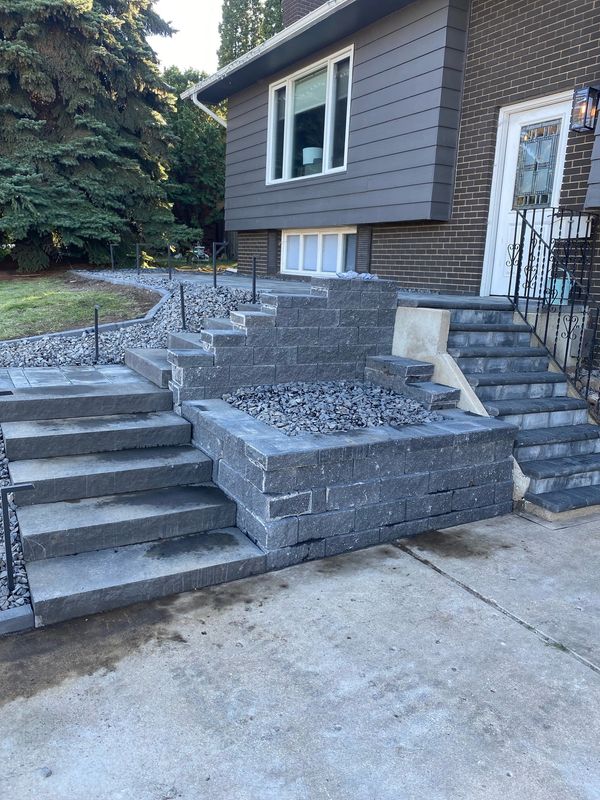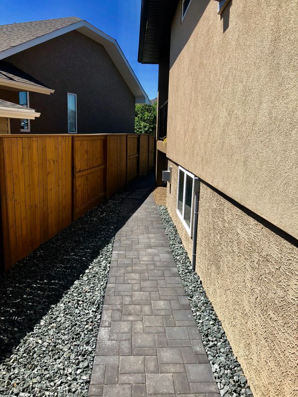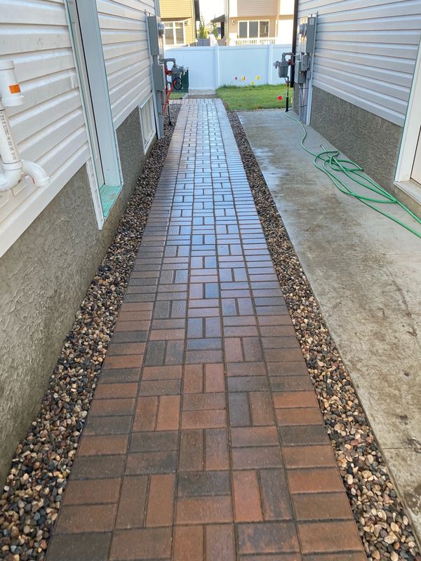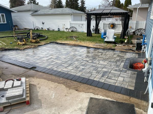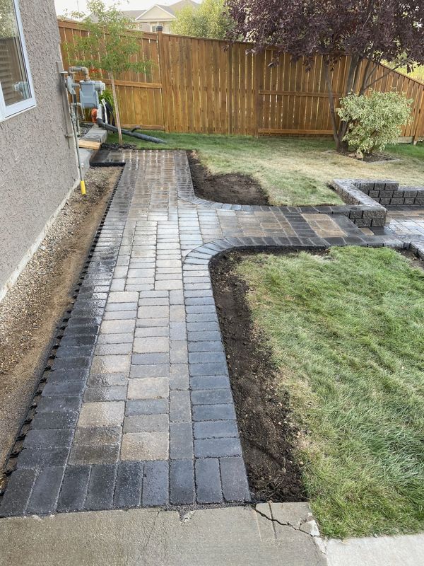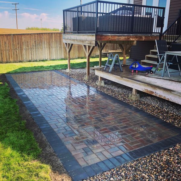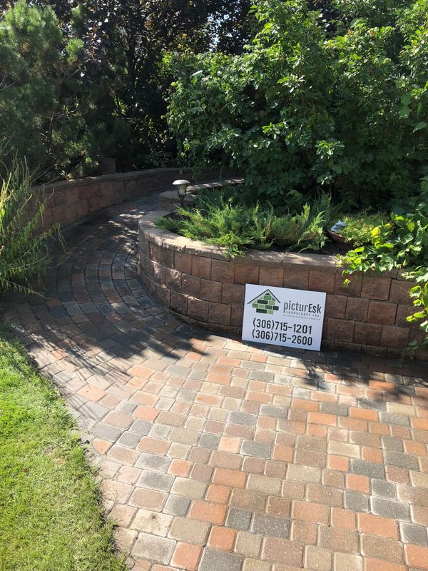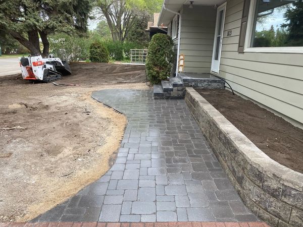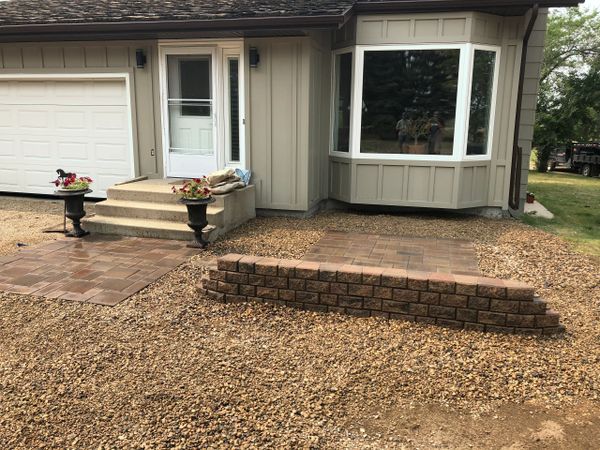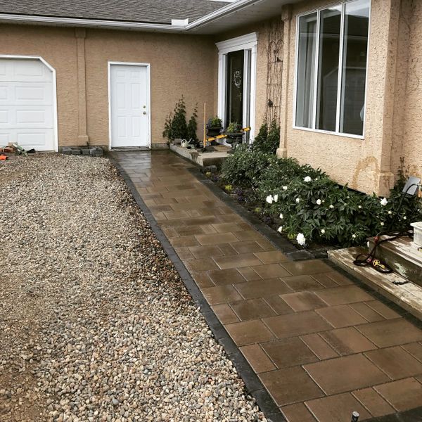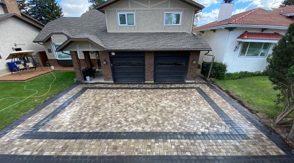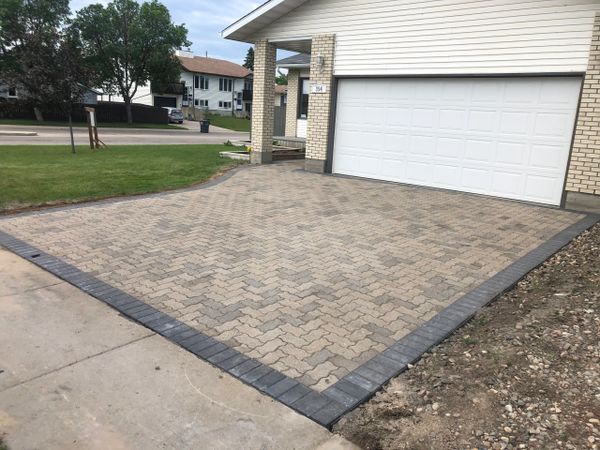 A paving stone driveway can make a great first impression for your home. Paving stones are built to withstand Canadian winters and everyday wear and tear. Unlike concrete driveways, paving stones are flexible and can handle the seasonal changes we deal with in Saskatchewan. Paving stone driveways can be constructed in many different patterns and have features such as; soldier courses, pattern or paver change and cut in designs.