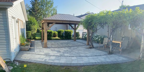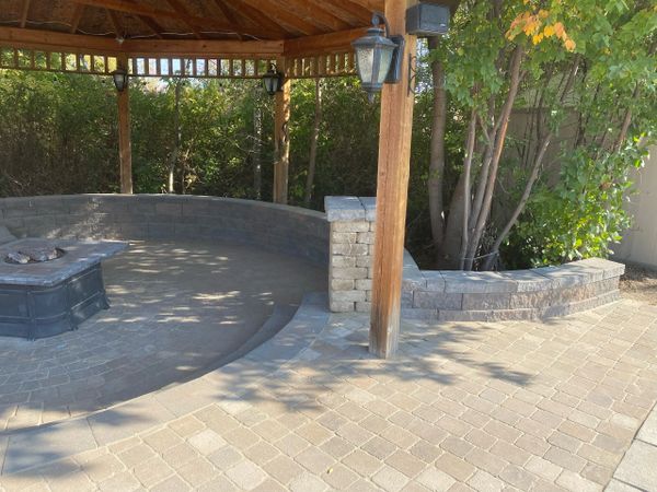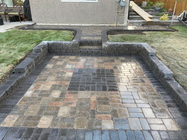 Paving stone patios are built to impress and can be customized to suit your space. There are countless options for paver size, colour and pattern to create a unique look for your property. Adding special touches to a paving stone patio such as: paving stone walls, steps, outdoor lighting, raised fire pits and outdoor kitchens, can make your outdoor living space a grand spectacle.
